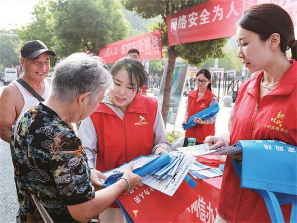 三是文藝宣講隊送法。打造“文藝搭臺、法治唱戲”宣講模式,把普法宣傳融入民間文藝活動,以文藝之花綻放“法蕊”,全市10個專業(yè)演出團體、13個文藝普法小分隊,制作豫劇《e起守護少年的你》、快板書《網(wǎng)絡(luò)文明記心間》、三句半《網(wǎng)絡(luò)安全你我他》等作品,以曲藝之聲傳遞“法意”,深入到田間地頭、大街小巷演出500余場,推動網(wǎng)絡(luò)法治宣傳“飛入尋常百姓家”。