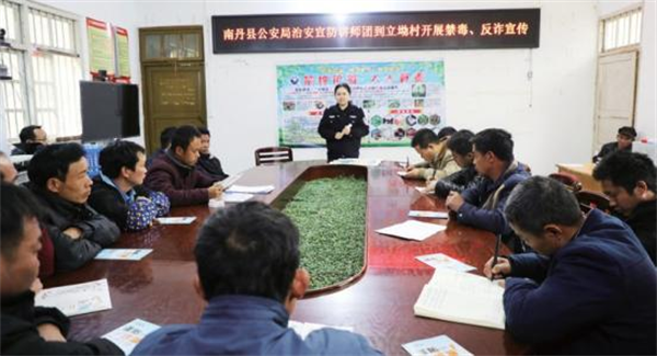 2024年2月22日,河池市南丹縣公安局治安宣防講師團(tuán)走進(jìn)八圩鄉(xiāng)立坳村開(kāi)展禁毒、反詐宣傳