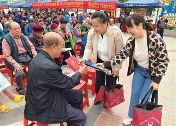 2024年11月14日,河池市環(huán)江檢察院干警向群眾介紹反電信網(wǎng)絡(luò)詐騙知識(shí)