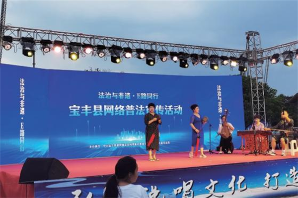 河南省平頂山市寶豐縣文化遺產(chǎn)和文化資源豐厚,尤其是說唱文化、魔術(shù)文化已經(jīng)融入寶豐民眾的日常生活,成為影響當(dāng)?shù)孛癖娋窈蜕畹囊环N獨(dú)特的文化實(shí)踐活動。寶豐縣結(jié)合實(shí)際,加強(qiáng)全局性謀劃、整體性推進(jìn),開展“法治與非遺E路同行”網(wǎng)絡(luò)普法宣傳活動,利用全縣特色文化資源優(yōu)勢創(chuàng)作優(yōu)質(zhì)內(nèi)容,用好線上線下“兩種方式”,豐富活動內(nèi)容,推動全縣網(wǎng)絡(luò)普法提質(zhì)增效。注重利用互聯(lián)網(wǎng)“賦能增效”作用,用好網(wǎng)絡(luò)開展學(xué)習(xí)、宣傳,實(shí)現(xiàn)線下活動、線上普法和線上宣傳相結(jié)合,實(shí)現(xiàn)網(wǎng)絡(luò)普法宣傳接地氣、有人氣、記得住、用得上,讓網(wǎng)絡(luò)普法宣傳走到群眾身邊、走進(jìn)群眾心里。