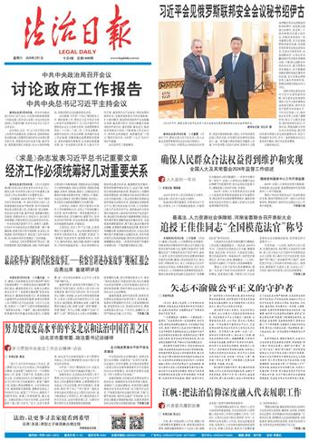 “前不久召開的中央政法工作會議,深入貫徹習近平總書記對政法工作的重要指示精神,全面部署了當前和今后一個時期的政法工作,彰顯了忠誠于黨、忠誠核心的堅定立場,引領政法機關矢志不渝沿著習近平總書記指引的方向砥礪前行;彰顯了胸懷大局、把握大勢的戰(zhàn)略眼光,立足形勢決定任務,敏銳洞察世情國情,清晰標定政法工作的時代方位;彰顯了干字當頭、真抓實干的鮮明導向,部署工作提綱挈領、重點突出,為建設更高水平的平安中國、法治中國提供了施工圖、任務書?!苯?,北京市委常委、政法委書記談緒祥就深入學習貫徹中央政法工作會議精神接受《法治日報》記者采訪時這樣說。