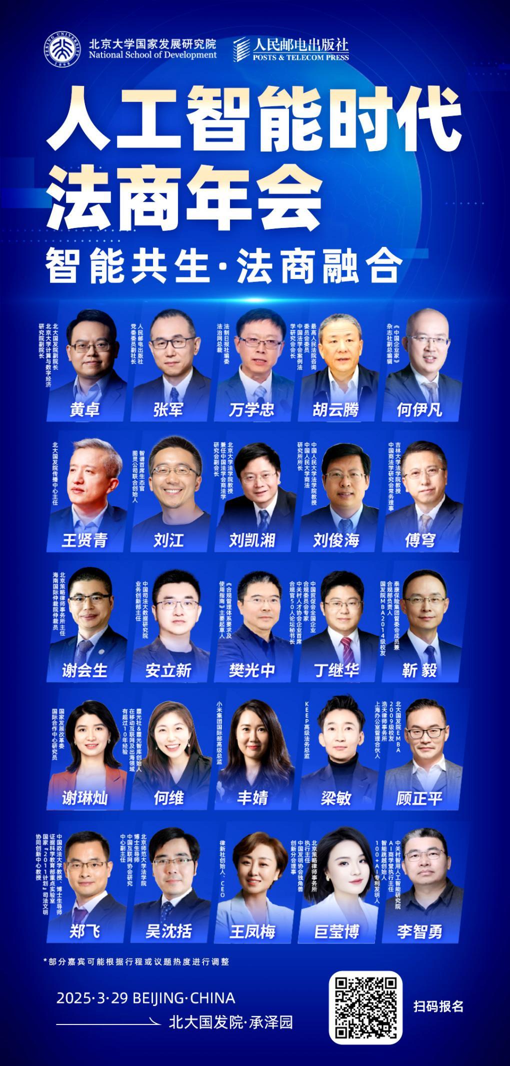 由人民郵電出版社、智元法律課堂聯(lián)合主辦,北京大學(xué)國(guó)家發(fā)展研究院、承澤商學(xué)共同協(xié)辦的“2025人工智能法商年會(huì)”將于3月29日在北京大學(xué)國(guó)家發(fā)展研究院承澤園校區(qū)盛大舉行。