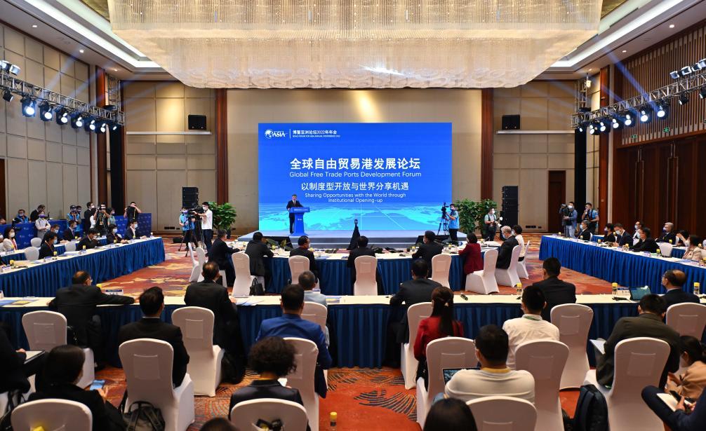 2022年4月21日,博鰲亞洲論壇2022年年會(huì)舉行“全球自由貿(mào)易港發(fā)展論壇”。與會(huì)嘉賓就如何提升自由區(qū)(港)的國(guó)際競(jìng)爭(zhēng)力等話題展開(kāi)交流。新華社記者 郭程 攝