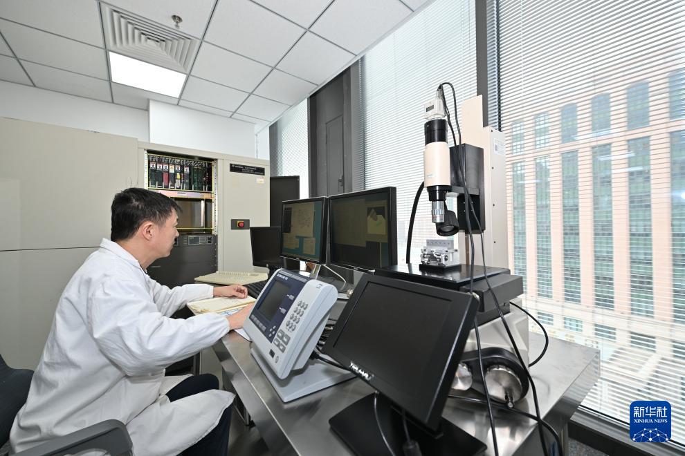在天津陳塘科技商務(wù)區(qū)天津知微材料科技有限公司,檢測(cè)人員在進(jìn)行材料分析(3月26日攝)。