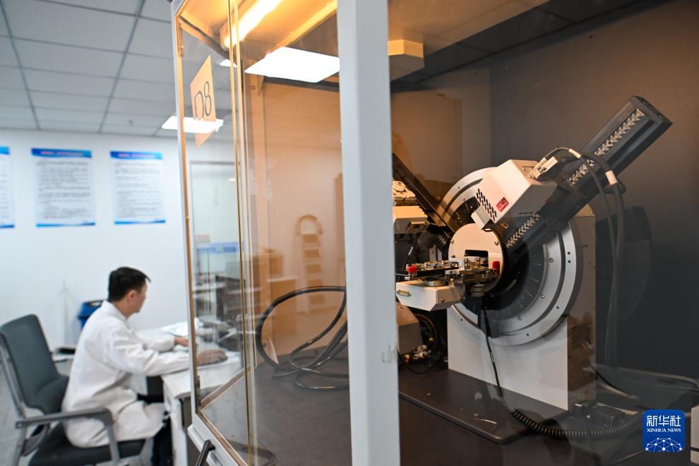 在天津陳塘科技商務(wù)區(qū)天津知微材料科技有限公司,檢測(cè)人員通過(guò)X射線多晶衍射儀進(jìn)行材料分析(3月26日攝)。