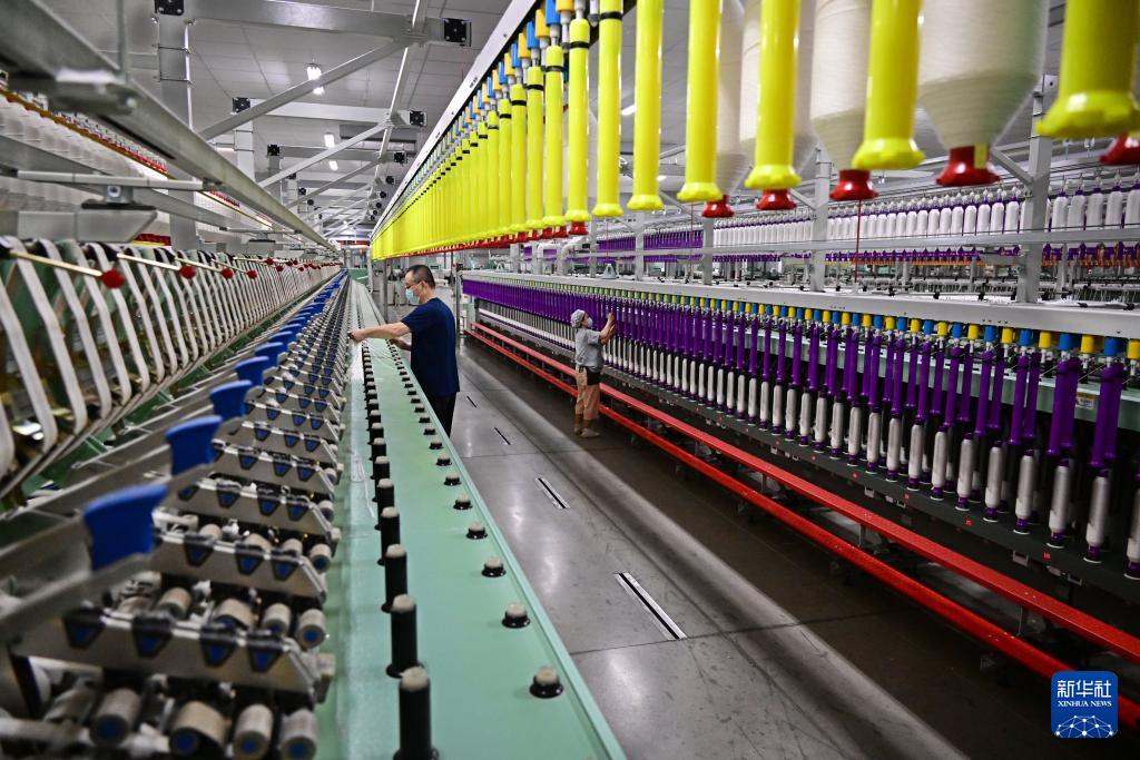 ??即墨區(qū)一家智慧紡紗企業(yè)的職工在全自動(dòng)粗紗生產(chǎn)線上忙碌(3月25日攝)。