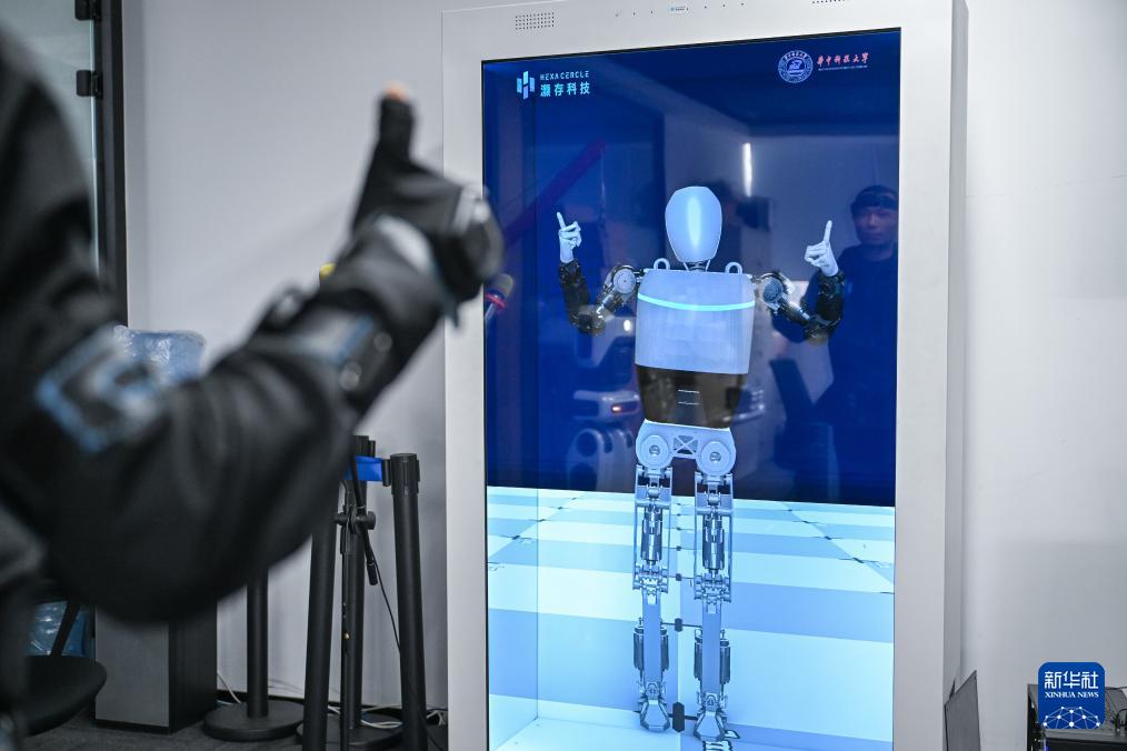??3月13日,在武漢灝存科技有限公司,工程師付龍?jiān)诓榭礄C(jī)器人動(dòng)作訓(xùn)練平臺(tái)。
