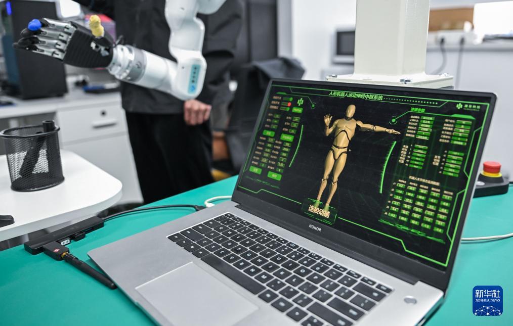 ??3月24日,研發(fā)人員在調(diào)試人形機(jī)器人運(yùn)動(dòng)神經(jīng)中樞系統(tǒng)。