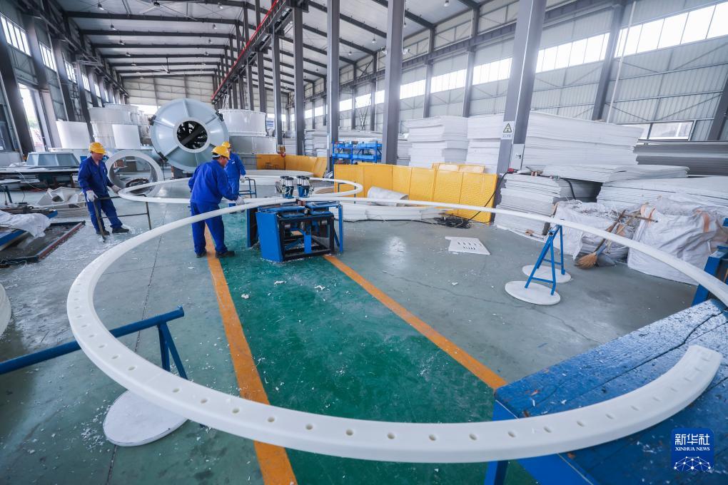 4月9日,在位于慈溪的國(guó)家專精特新“小巨人”企業(yè)寧波太極環(huán)保設(shè)備有限公司車間內(nèi),工人在生產(chǎn)、組裝銷往東南亞的環(huán)保設(shè)備。