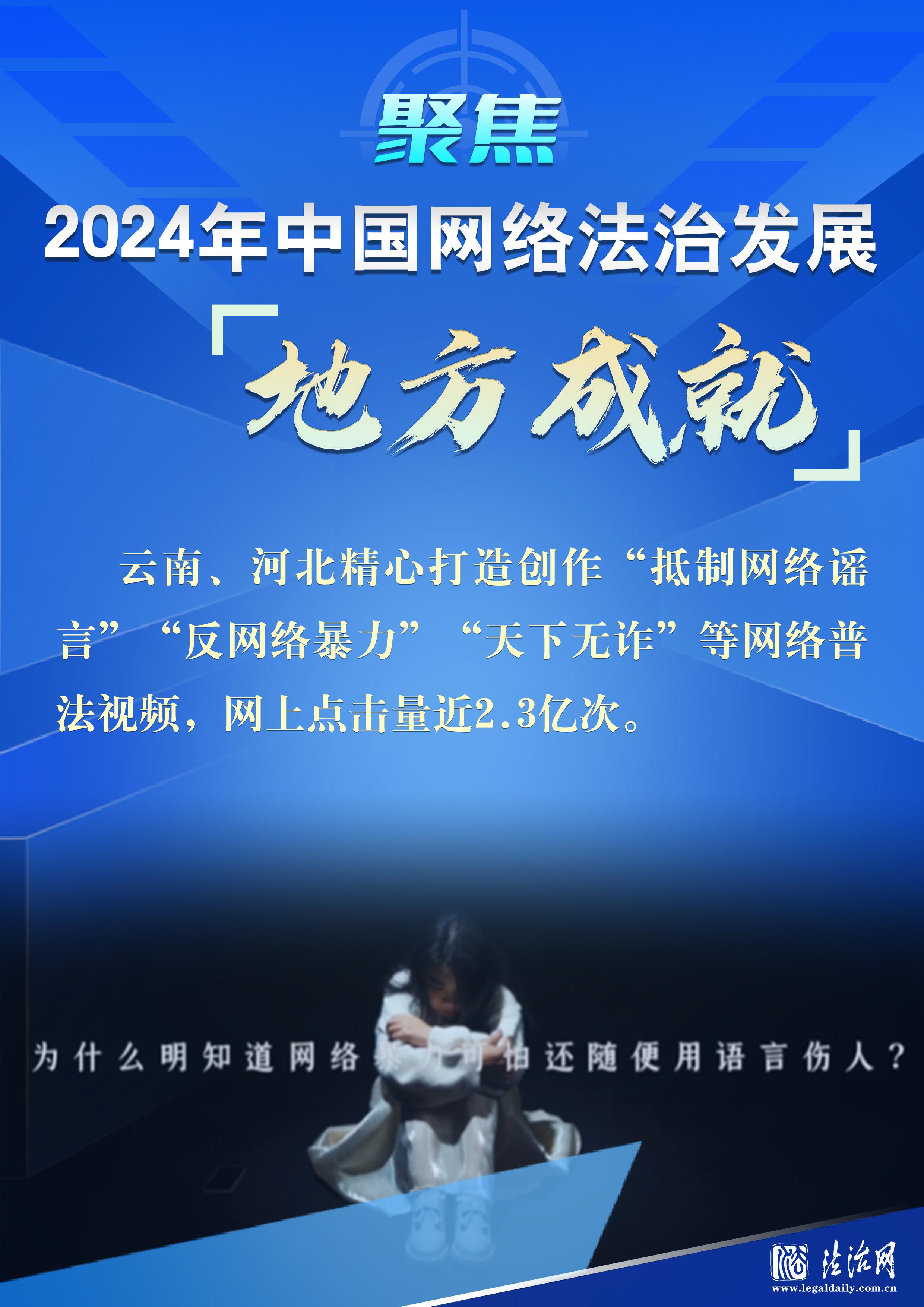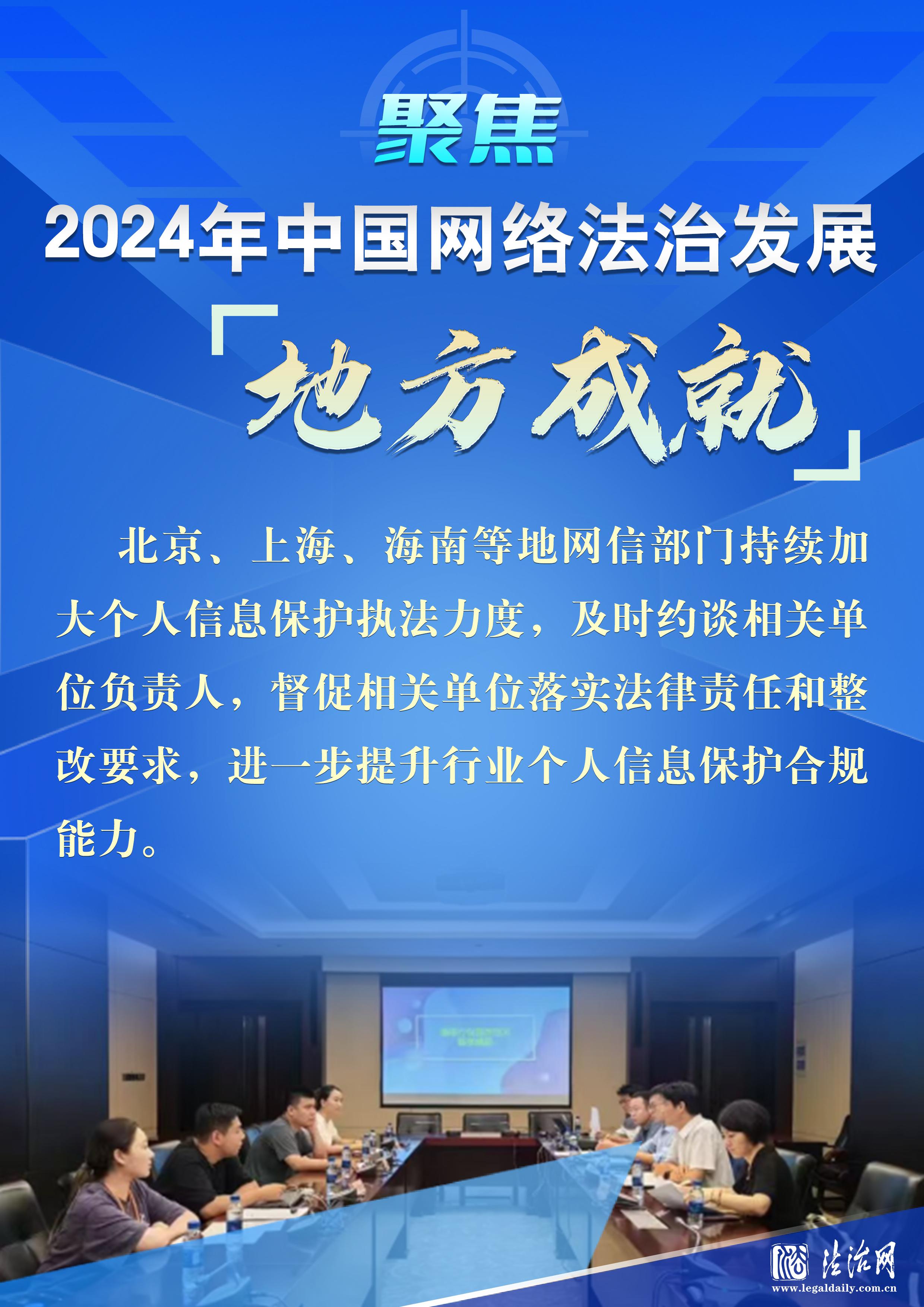 4月27日,國家互聯(lián)網(wǎng)信息辦公室發(fā)布《中國網(wǎng)絡(luò)法治發(fā)展報告(2024年)》。這是首部國家部門層面發(fā)布的網(wǎng)絡(luò)法治綜合性年度報告,既是《中國網(wǎng)絡(luò)法治三十年》報告的續(xù)篇,也是中國網(wǎng)絡(luò)法治發(fā)展年度報告的開篇。讓我們用一組海報帶你看我國網(wǎng)絡(luò)法治建設(shè)這一年的地方成就,感受全國各地網(wǎng)絡(luò)法治建設(shè)邁出的堅實步伐。