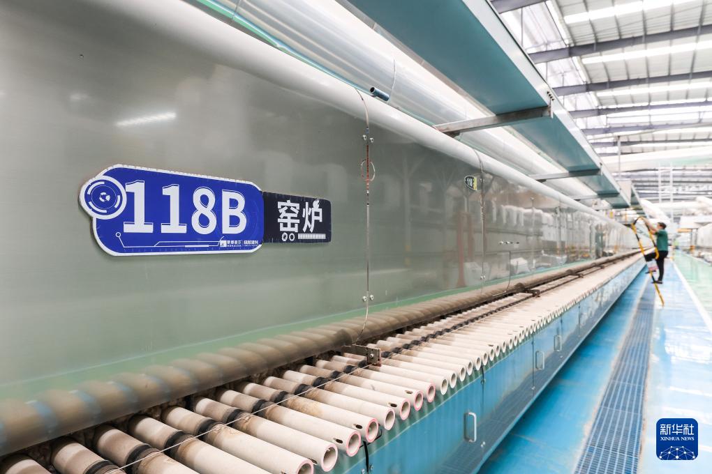 4月22日,工人在佛山蒙娜麗莎大尺寸陶瓷巖板自動生產(chǎn)線察看窯爐運行狀態(tài)。