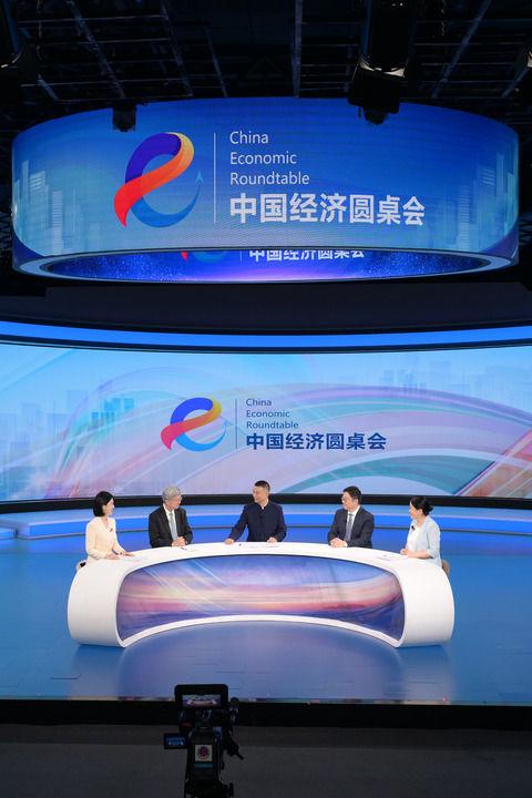 嘉賓們在第十五期“中國經(jīng)濟圓桌會”大型全媒體訪談節(jié)目錄制現(xiàn)場交流發(fā)言。新華社記者 李賀 攝