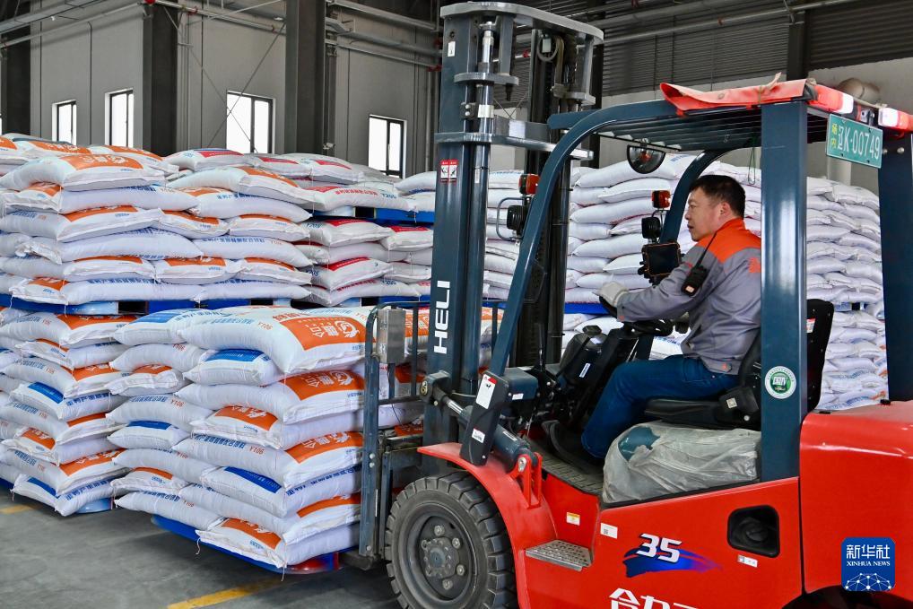 4月24日,在位于遼陽(yáng)市的遼寧鑫金科技實(shí)業(yè)集團(tuán)有限公司的飼料廠內(nèi),工人使用叉車搬運(yùn)飼料。