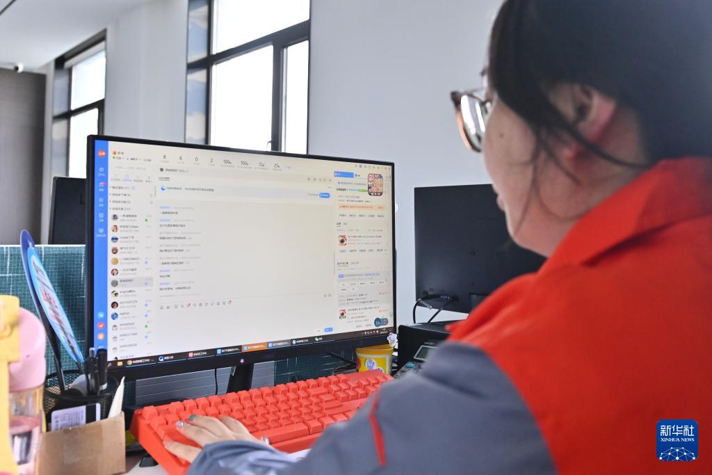 4月24日,在位于遼陽市的遼寧鑫金科技實業(yè)集團(tuán)有限公司電商部內(nèi),工作人員在線上和顧客溝通。