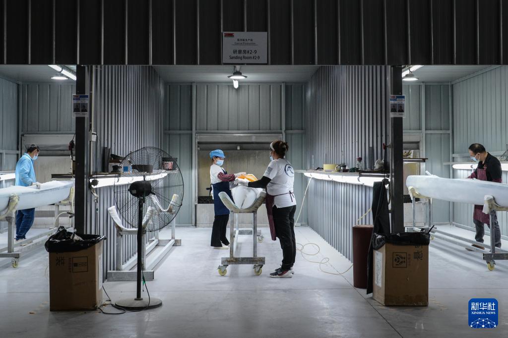 4月24日,工人在速力復合材料有限公司生產車間研磨房工作。