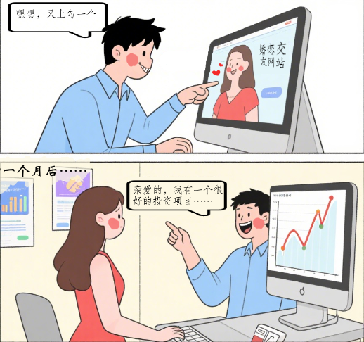 或通過(guò)婚戀交友平臺(tái)與個(gè)人確定婚戀關(guān)系,再以“內(nèi)部消息”“特殊資源”等誘騙個(gè)人參與投資,引導(dǎo)個(gè)人在偽造或仿冒的投資平臺(tái)進(jìn)行投資,并以小額投資返利作為誘餌,不斷引導(dǎo)個(gè)人加大資金投入,隨后迅速轉(zhuǎn)移資金。