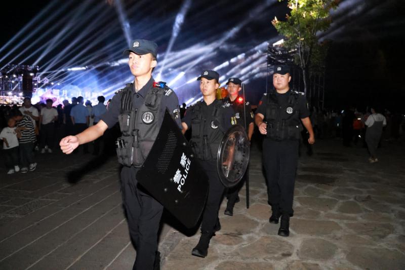 夜幕降臨,華燈點亮貫城河,平遠古鎮(zhèn)與大府頭廣場游人如織。裝備齊整的民警、英姿颯爽的特警,成為熙攘人潮中最安心的存在。“我們必須常態(tài)化巡邏,確保群眾第一時間能找到警察?!彪p堰派出所民警余莎的話語,道出了“流動管家”的日常。