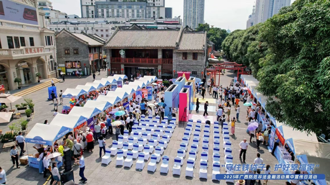6月15日,廣西金融監(jiān)管局聯(lián)合中共廣西壯族自治區(qū)委員會金融委員會辦公室在南寧市三街兩巷歷史文化街區(qū)主辦2025年廣西防范非法金融活動集中宣傳日活動,聯(lián)合法院、檢察院、公安、市場監(jiān)管、民政等多家政府機(jī)關(guān)單位,以多維度、多視角協(xié)同構(gòu)建防非宣傳新格局。活動以多種形式深入社區(qū)、校園、鄉(xiāng)村、商圈、工廠等開展金融知識宣教,單場直播瀏覽量突破10.7萬人次。