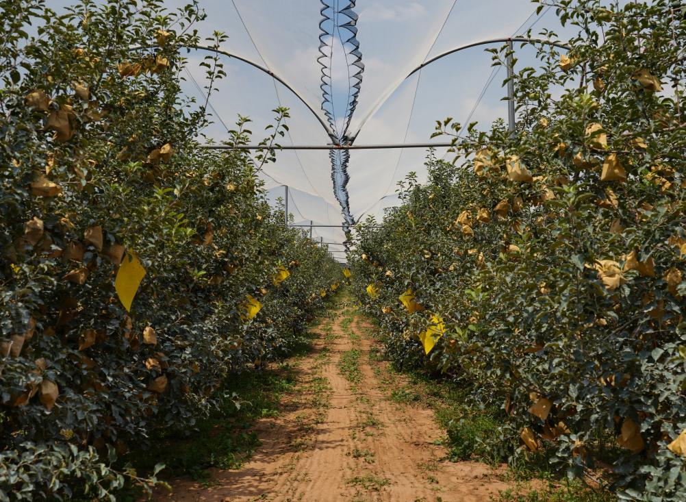 走進(jìn)阿寺村的果園,濃濃的“技術(shù)范兒”撲面而來。在果農(nóng)李亞民的矮化密植新式果園里,水肥一體化灌溉設(shè)施貫穿田間,防雹網(wǎng)在陽光下折射出細(xì)碎的銀光。