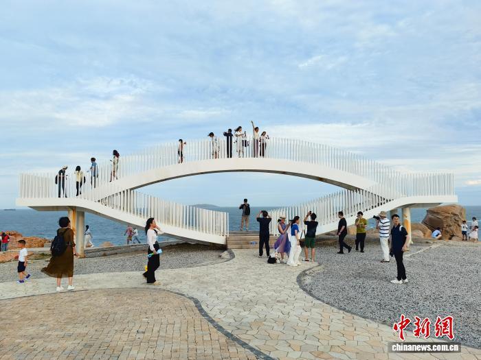 圖為在平潭68海里景區(qū),游客在“海峽之眼”打卡點(diǎn)拍照打卡。 中新網(wǎng)記者 閆旭 攝
