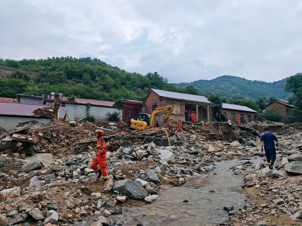 在石屋子村開展救援的消防隊員。(受訪者供圖)