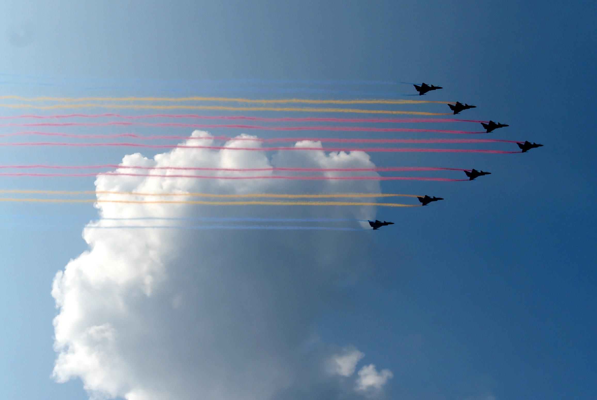 聯(lián)合軍樂團(tuán)和合唱團(tuán)現(xiàn)場奏唱抗戰(zhàn)曲目。