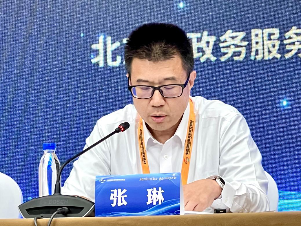 北京市政務(wù)和數(shù)據(jù)局黨組成員、市大數(shù)據(jù)中心主任張琳發(fā)言 付萌 攝