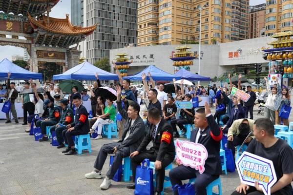 同時(shí),昆明公安在金馬碧雞坊金碧廣場開展了形式創(chuàng)新、內(nèi)容多元的“法治日”線下宣傳活動(dòng)。網(wǎng)絡(luò)安全主題視頻通過生動(dòng)形象的畫面和案例吸引群眾駐足觀看,直觀感受到網(wǎng)絡(luò)安全的重要性;在“網(wǎng)絡(luò)安全知識有獎(jiǎng)問答”環(huán)節(jié),參與者紛紛搶答,現(xiàn)場互動(dòng)氛圍熱烈;“網(wǎng)絡(luò)安全宣傳周警民集體倡議”儀式有20名現(xiàn)場群眾代表上臺宣讀網(wǎng)絡(luò)安全倡議書,共同承諾自覺維護(hù)網(wǎng)絡(luò)清朗空間;反詐中心民警現(xiàn)場普法,結(jié)合最新詐騙手法和典型案例講解識別防范技巧,提醒群眾筑牢安全防線。隨后的反詐知識有獎(jiǎng)問答再次點(diǎn)燃現(xiàn)場氣氛,群眾現(xiàn)學(xué)現(xiàn)用、對答如流,將主題日活動(dòng)推向高潮。