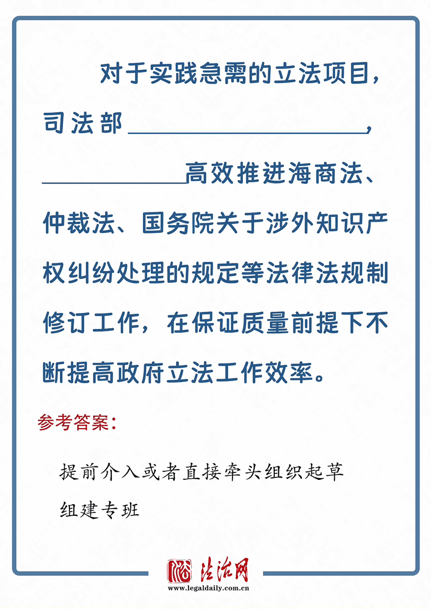 政府立法是國家立法的重要組成部分。作為國務(wù)院法制機構(gòu),司法部堅持圍繞中心、服務(wù)大局,充分發(fā)揮政府立法起草、審查和立法監(jiān)督等職能作用,不斷推進政府立法工作提質(zhì)增效。政府立法,這些領(lǐng)域有“必答題”,一起來看!