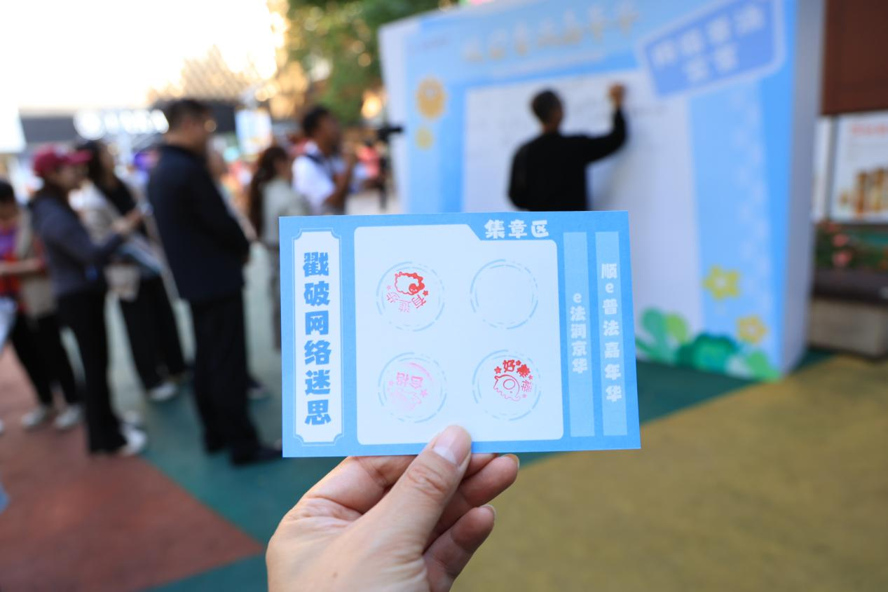 10月14日,“順e普法嘉年華”網(wǎng)絡普法活動在北京市順義區(qū)祥云小鎮(zhèn)文旅街區(qū)啟幕?!熬W(wǎng)購維權小屋”前,市民們正駐足答題;“法治飛行棋”區(qū)域內,游客們圍在彩色棋盤旁躍躍欲試。這場將網(wǎng)絡普法融入休閑生活的特色活動,讓法治知識悄然傳播。