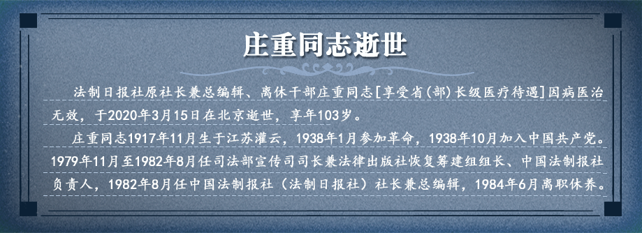 沉痛哀悼!法制日?qǐng)?bào)社首任社長(zhǎng)莊重同志逝世|百歲了,依然用電視聽(tīng)新聞!