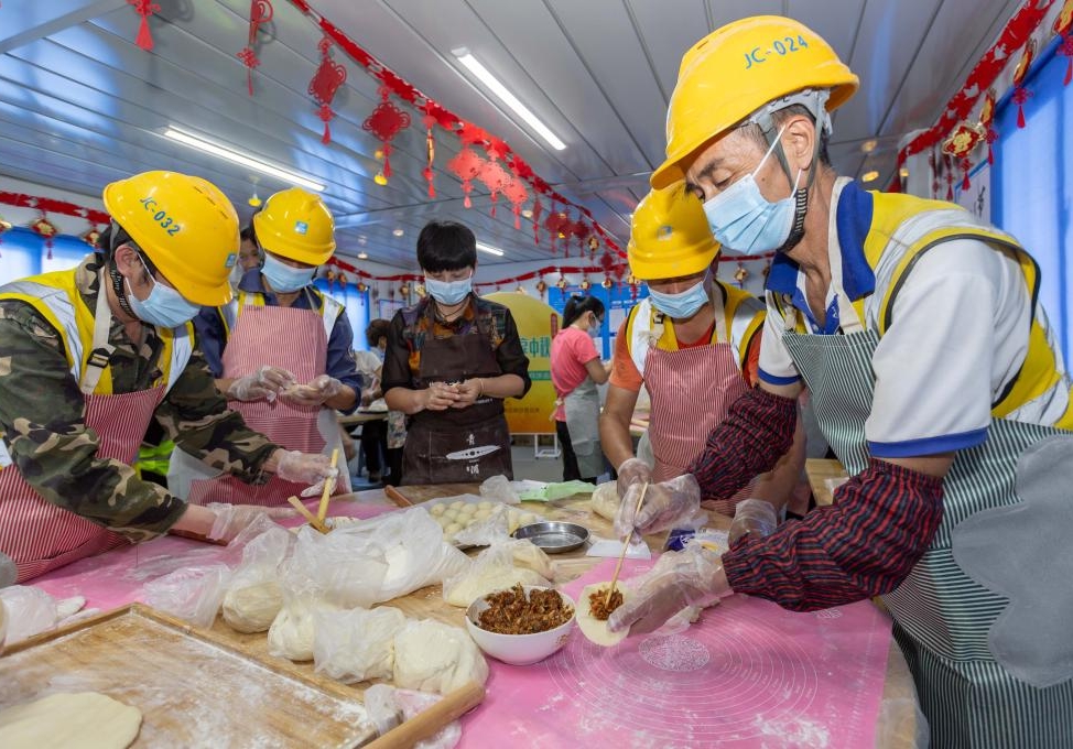中秋佳節(jié)來臨之際,中建三局網(wǎng)易上海國際文創(chuàng)科技園項目部開展工地迎中秋活動,組織建設(shè)者參與包月餅、做花燈活動……