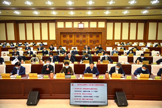 王良在主持時(shí)指出,習(xí)近平法治思想是順應(yīng)實(shí)現(xiàn)中華民族偉大復(fù)興時(shí)代要求應(yīng)運(yùn)而生的重大理論創(chuàng)新成果,是馬克思主義法治理論中國(guó)化最新成果,是習(xí)近平新時(shí)代中國(guó)特色社會(huì)主義思想的重要組成部分,是全面依法治國(guó)的根本遵循和行動(dòng)指南。要在深入學(xué)習(xí)貫徹習(xí)近平法治思想上下功夫求實(shí)效,與深入學(xué)習(xí)貫徹黨的十九屆六中全會(huì)精神結(jié)合起來(lái),與深入學(xué)習(xí)貫徹習(xí)近平總書記關(guān)于堅(jiān)持和完善人民代表大會(huì)制度的重要思想和中央人大工作會(huì)議精神結(jié)合起來(lái),與深入學(xué)習(xí)貫徹習(xí)近平總書記對(duì)山東重要指示要求結(jié)合起來(lái),與全面貫徹落實(shí)省委十一屆十四次全體會(huì)議精神結(jié)合起來(lái),堅(jiān)持黨對(duì)人大工作的全面領(lǐng)導(dǎo),不斷提高政治判斷力、政治領(lǐng)悟力、政治執(zhí)行力。要切實(shí)把學(xué)習(xí)成效轉(zhuǎn)化為做好人大工作的實(shí)際行動(dòng),在知行合一中擔(dān)當(dāng)作為,以強(qiáng)烈的責(zé)任感使命感扎實(shí)做好立法、監(jiān)督、普法宣傳等各項(xiàng)工作,努力為法治山東建設(shè)作出人大貢獻(xiàn)。