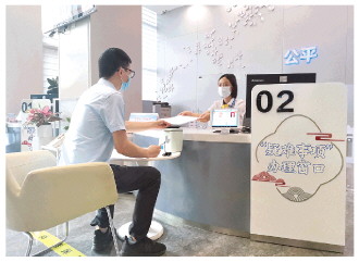 圖為企業(yè)相關(guān)負(fù)責(zé)人在佛山市禪城區(qū)行政服務(wù)中心“疑難事項”辦理窗口辦理相關(guān)業(yè)務(wù)。