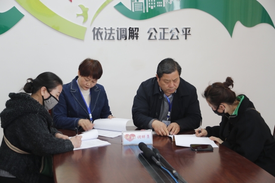 11月17日,河南省開(kāi)封市宋都人民調(diào)解委員會(huì)調(diào)解員與律師聯(lián)手化解一起糾紛,當(dāng)事雙方現(xiàn)場(chǎng)簽訂調(diào)解協(xié)議。