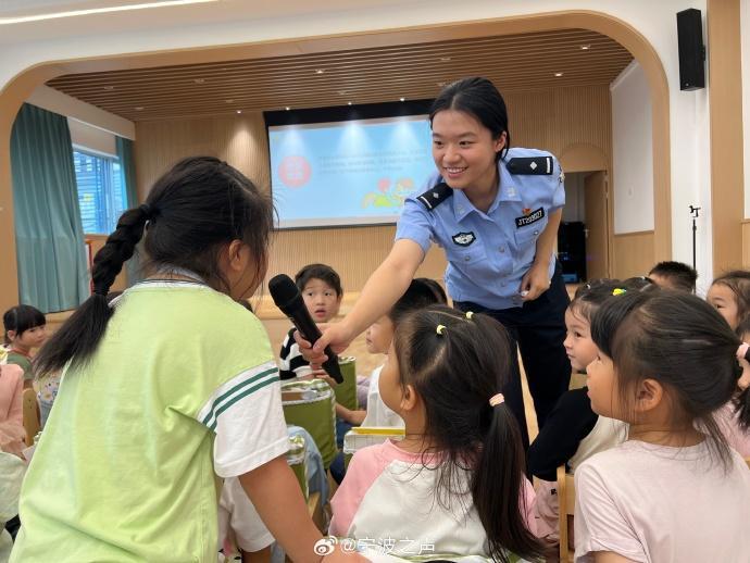 近日,浙江省寧波市公安局鄞州分局福明派出所與轄區(qū)樂禾幼兒園共同舉辦主題為“防拐防騙,為愛護(hù)航”的安全演練活動(dòng)。民警用生動(dòng)有趣的故事和朗朗上口的兒歌,將防拐騙安全意識(shí)植入孩子們心間。圖為活動(dòng)現(xiàn)場(chǎng)。
