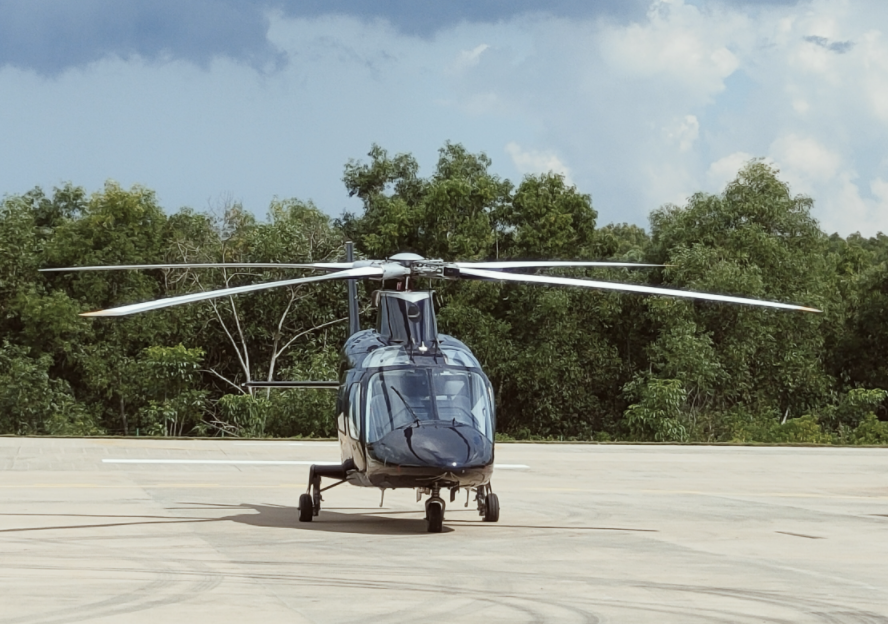 8月18日下午,記者在海口市的金林??诩鬃油ㄓ脵C(jī)場,看到一架從墨西哥購進(jìn)的AW109E直升機(jī)運抵此地,并完成安裝調(diào)試、交付運營。