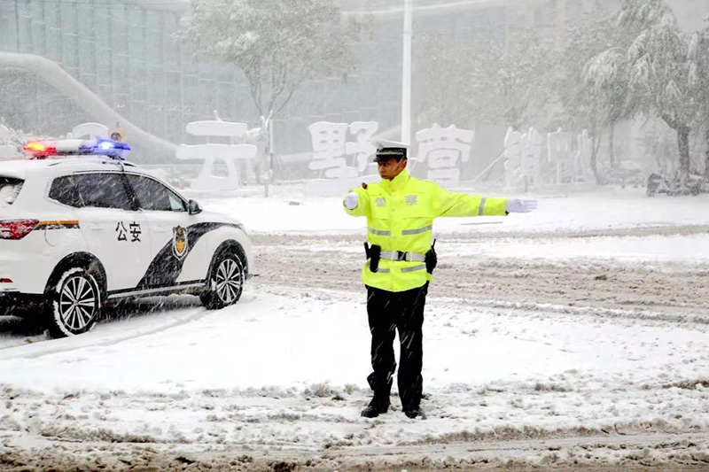 11月7日一早,德州市山東德城區(qū)積雪已超15毫米,路面濕滑,給廣大市民出行帶來(lái)很大的安全隱患。德州交警啟動(dòng)應(yīng)急預(yù)案,在轄區(qū)重點(diǎn)路段、路口增派警力,疏堵保暢,同時(shí)加大巡邏管控力度,幫助“趴窩”車(chē)輛解困,快速處理路面刮擦事故,全力確保道路交通安全,被群眾稱(chēng)為雪中的熒光“路標(biāo)”。