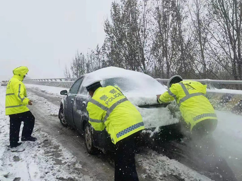 面對(duì)暴雪來(lái)襲,山東省濟(jì)南市公安局長(zhǎng)清區(qū)分局多警聯(lián)動(dòng),巡警、交警和各派出所共同加大轄區(qū)治安交通巡防力度,通過(guò)在易發(fā)交通事故等重點(diǎn)路段采取定點(diǎn)執(zhí)勤和巡邏管控相結(jié)合的措施,幫助群眾解決上路期間發(fā)生的問(wèn)題。11月7日上午10時(shí)30分,長(zhǎng)清區(qū)交警大隊(duì)在大學(xué)城丁香路、紫薇路等重點(diǎn)路段執(zhí)勤中發(fā)現(xiàn)有拋錨車(chē)輛停在路中間,民警迅速前往救助,幫助過(guò)路受阻車(chē)輛及群眾,將車(chē)輛推至安全區(qū)域,并疏導(dǎo)交通、維持通行秩序。崮山派出所民警在國(guó)道104線(xiàn)巡邏時(shí)接到群眾求助,幫助遇困群眾車(chē)輛。歸德中隊(duì)交警幫助遇困車(chē)輛上的老人,將老人攙扶到中隊(duì)休息并送上熱水。