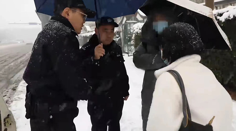 圖為濟(jì)南市公安局市中區(qū)分局大觀園派出所民警幫助賈女士找回雪中乘錯(cuò)車(chē)的孩子。