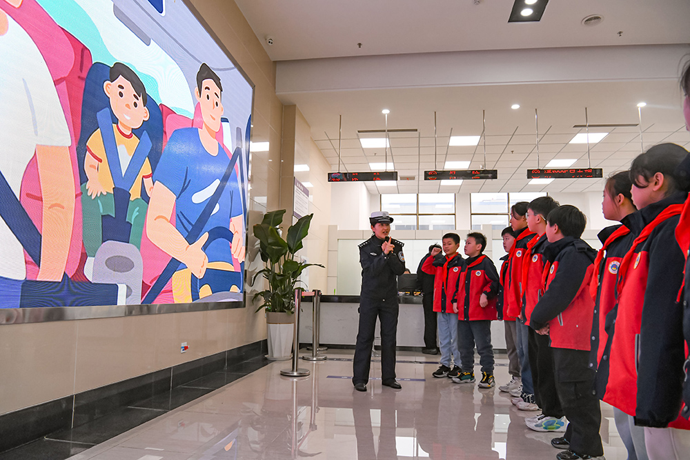 4月7日,安徽省含山縣公安局交管大隊邀請含山第三小學部分學生來到警營,開展以“動漫說法”為主題的宣傳活動,引導孩子們自覺遵守交通規(guī)則與行為規(guī)范。