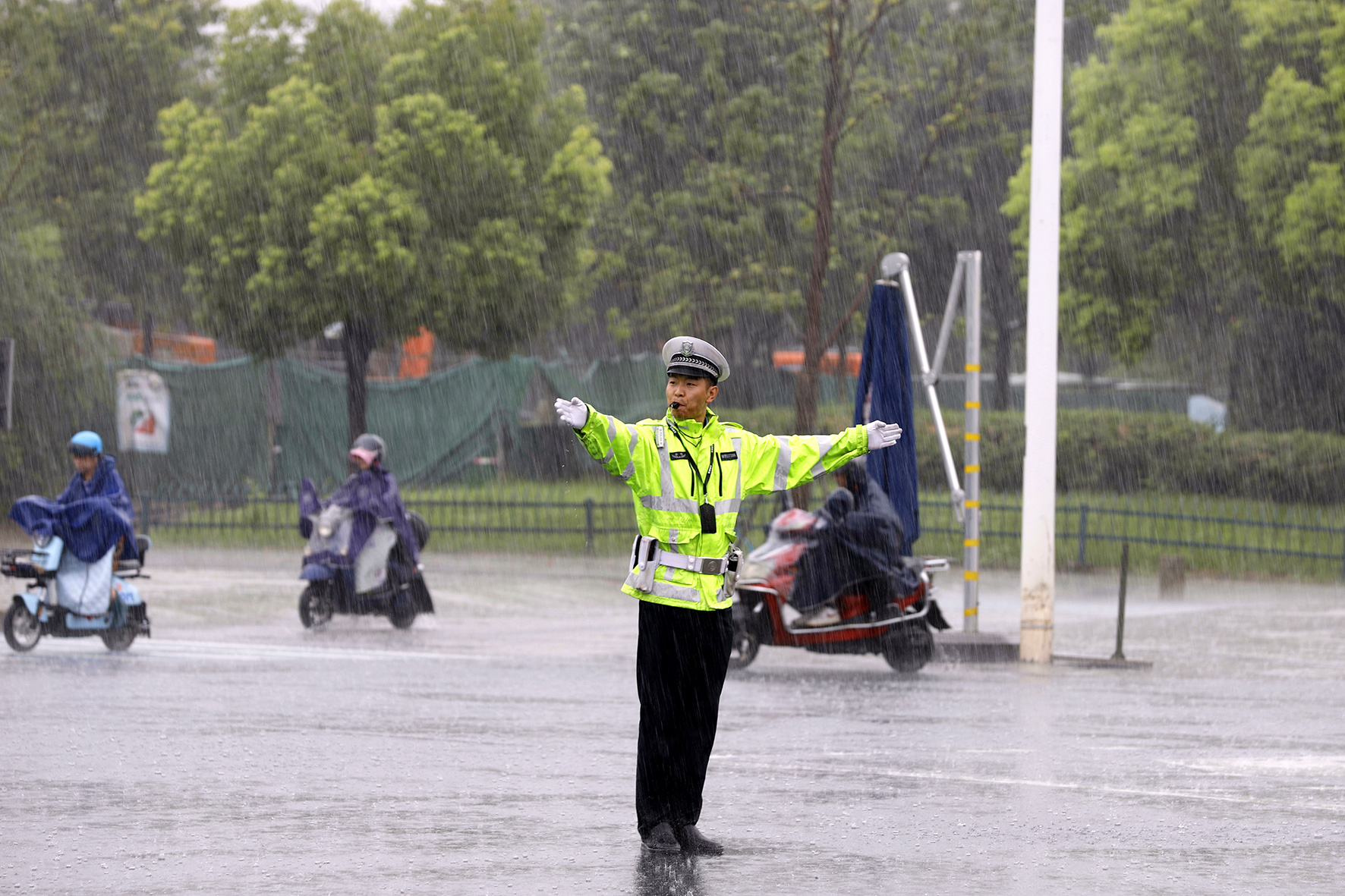 7月12日,安徽省蕪湖市迎來(lái)又一輪強(qiáng)降雨天氣。蕪湖市公安局交警支隊(duì)鳩江大隊(duì)全警上路,疏堵保暢,排查隱患,服務(wù)市民,確保過(guò)往車輛安全通行。