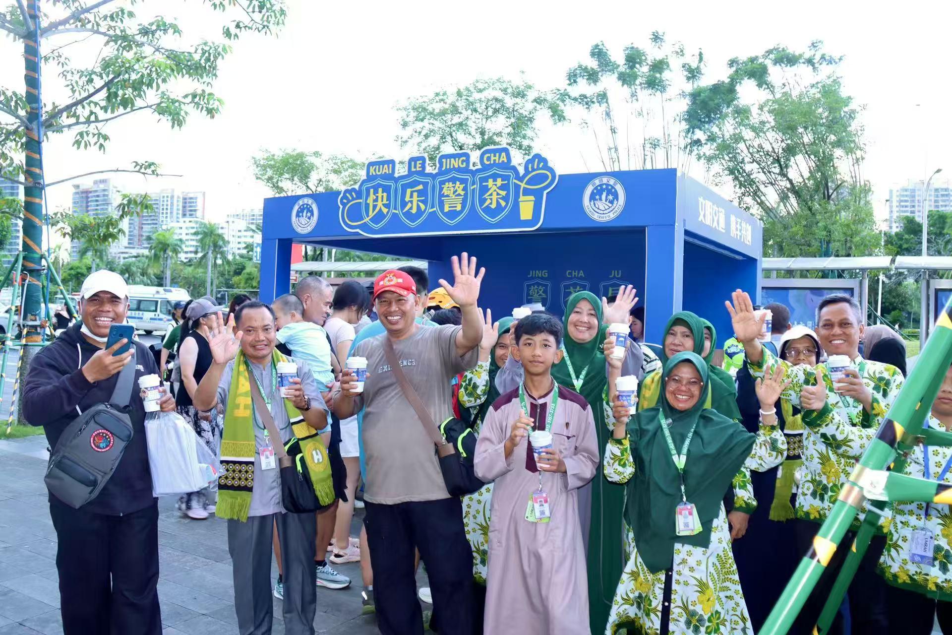“警茶局”的魅力,還吸引了八方來客。10月2日下午,來自印度尼西亞的馬克在導(dǎo)游的幫助下,成功答對了所有題目。他興奮地舉起手中的“警茶”,為這個(gè)創(chuàng)意活動(dòng)點(diǎn)贊。