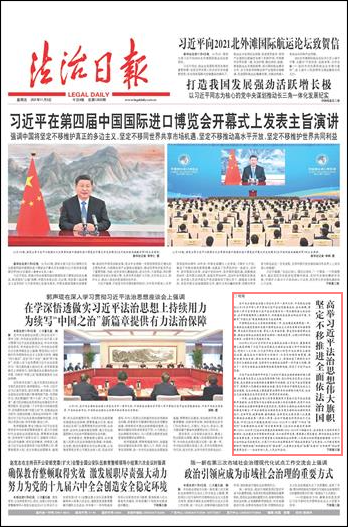 在中央全面依法治國工作會議召開一周年之際,中央依法治國辦11月4日召開深入學(xué)習(xí)貫徹習(xí)近平法治思想座談會。會議強(qiáng)調(diào),要把深入學(xué)習(xí)宣傳貫徹習(xí)近平法治思想作為一項長期的重大政治任務(wù),在學(xué)深悟透做實(shí)上持續(xù)用力,加快建設(shè)良法善治的法治中國,為續(xù)寫“中國之治”新篇章提供有力法治保障。