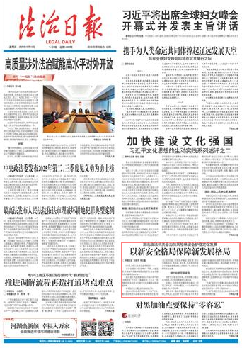 《法治日?qǐng)?bào)》記者了解到,“十四五”以來,湖北政法機(jī)關(guān)認(rèn)真落實(shí)總體國(guó)家安全觀,全力以赴防風(fēng)險(xiǎn)、保安全、護(hù)穩(wěn)定、促發(fā)展,堅(jiān)定不移抓法治、優(yōu)環(huán)境、促發(fā)展,為全省加快建成中部崛起重要戰(zhàn)略支點(diǎn)提供了有力安全保障和法治支撐。