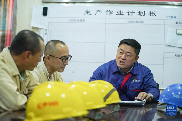 劉伯鳴在廠房內指揮作業(yè)(2022年9月17日攝)。新華社記者 王松 攝