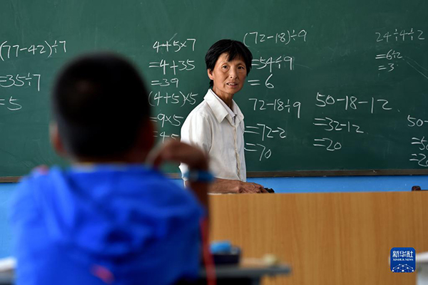 劉桂珍在山西省代縣王家會(huì)小學(xué)上數(shù)學(xué)課(資料照片)。新華社記者 詹彥 攝