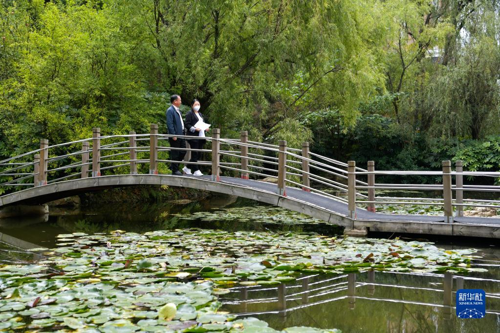 10月16日,在貴州貴陽觀山湖區(qū)金陽街道,金元社區(qū)黨總支副書記安春燕(右)與居民交流。新華社記者 楊文斌 攝