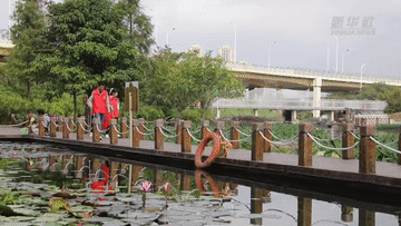 俯瞰一汪碧水,倒映其中,黃的、綠的、紅的花草在水中搖曳,魚兒游弋其間。初冬時節(jié),位于廣西南寧市興寧區(qū)三塘鎮(zhèn)的那考河濕地公園,幾公里長的河道沿岸,花海、濕地、碧水、散步的人,滿目和諧。