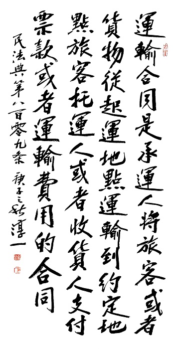 民法典第八百零九條 運(yùn)輸合同是承運(yùn)人將旅客或者貨物從起運(yùn)地點(diǎn)運(yùn)輸?shù)郊s定地點(diǎn),旅客、托運(yùn)人或者收貨人支付票款或者運(yùn)輸費(fèi)用的合同。